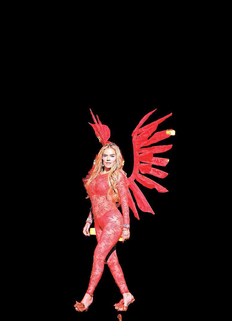 El momento más esperado de la noche llegó con la actuación de Karol G, quien se robó el espectáculo enfundada en un atuendo rojo con alas majestuosas que simbolizaron la fuerza femenina y el orgullo latino.
