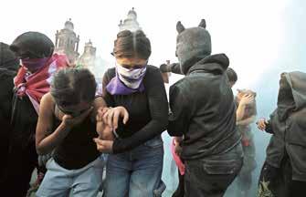 El ambiente parecía haberse calmado. Sin embargo, cerca de las 21:00 horas elementos de Fuerza Civil ingresaron a la Explanada para retirar a las manifestantes que permanecían en el sitio. Entre empujones y reclamos, una mujer fue sometida por policías y minutos más tarde quedó en libertad.