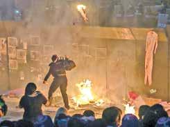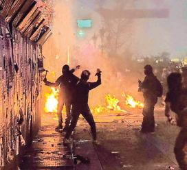 Participantes prendieron fuego a carteles y pancartas frente a las vallas de protección.