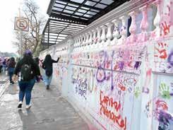 Frente a las vallas, muchas pegaron carteles, escribieron consignas y alzaron la voz. Por varios minutos, las asistentes corearon