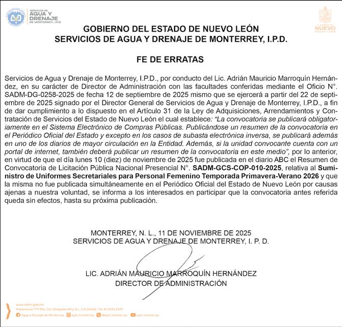 ABC es una publicación, de impresión y distribución diaria de Editorial Monterrey, S.A. Oficinas y Talleres: Platón Sánchez 411 Sur, Monterrey, N.L. Apartado M-19 C.P. 64000 Tel: 81-8047-4900 Oficinas en CDMX: Leibintz 231, Col. Anzures México, CDMX C.P. 11590 Delegación Miguel Hidalgo Tel: 81-8047-4900 Número de Certificado de Reserva otorgado por el Instituto Nacional del Derecho de Autor 04-2011-020413033200-101 Fundado el 15 de Junio de 1985. Certificado de Licitud de Título y Contenido No. 15281 otorgado con fecha veintidós de julio de dos mil once por la Comisión Calificadora de Publicaciones y Revistas Ilustradas de la Secretaría de Gobernación. Los conceptos vertidos por los editorialistas son bajo su propia responsabilidad y no reflejan el sentir de este periódico. Ventas de Publicidad y Maquilas: 81-8047- 4900 Ext. 2225 ventasabc@grupoabcmedia.com