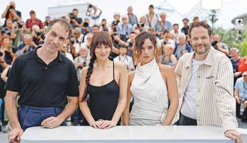El director Michael Angelo Covino (izq.) posó junto al elenco en la presentación de “Splitsville”.
