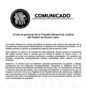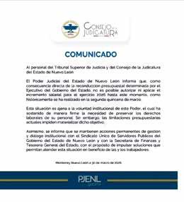 La Fiscalía General de Justicia de Nuevo León, el Consejo de la Judicatura de Nuevo León, la Comisión Estatal de Derechos Humanos y el Instituto Estatal de Transparencia, Acceso a la Información y Protección de Datos Personales informaron por separado que no han podido realizar ajustes salariales
