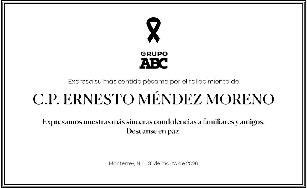 ABC DE MONTERREY Medio impreso de circulación de lunes a viernes / Editor responsable: Gonzalo Estrada Torres. Reserva de derechos: 04-2011020413033200-101 / Licitud de Título y Contenido: 15281. Dirección de la Publicación: Platón Sánchez No. 411, Colonia Centro, C.P. 64000, Monterrey, Nuevo León. Nombre y Domicilio de la Imprenta: Editorial Monterrey S.A., Platón Sánchez No. 411, Colonia Centro, C.P. 64000, Monterrey, Nuevo León. Nombre y Domicilio del Distribuidor: Editorial Monterrey S.A., Platón Sánchez No. 411, Colonia Centro, C.P. 64000, Monterrey, Nuevo León. Ventas de Publicidad y Maquilas: 81-8047- 4900 Ext. 2225 ventasabc@grupoabcmedia.com