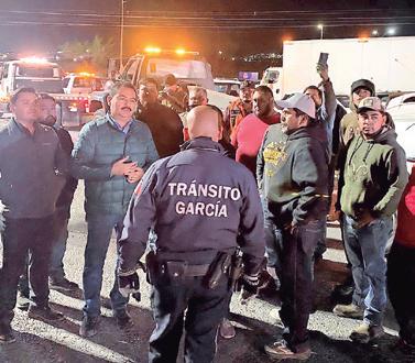 La problemática también se presenta en el municipio de García, donde la noche de este lunes operadores de grúas bloquearon la avenida Lincoln, en su cruce con Jardín de las Lomas, para exigir el cese de presuntos actos de corrupción por parte de elementos de Tránsito.