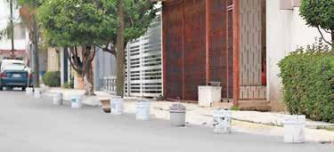 En un domicilio de la colonia Primavera, en Distrito Tec, se localizaron al menos ocho botes rellenos de cemento colocados sobre la vía pública.