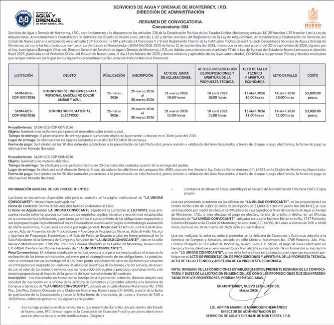 ABC DE MONTERREY Medio impreso de circulación de lunes a viernes / Editor responsable: Gonzalo Estrada Torres. Reserva de derechos: 04-2011020413033200-101 / Licitud de Título y Contenido: 15281. Dirección de la Publicación: Platón Sánchez No. 411, Colonia Centro, C.P. 64000, Monterrey, Nuevo León. Nombre y Domicilio de la Imprenta: Editorial Monterrey S.A., Platón Sánchez No. 411, Colonia Centro, C.P. 64000, Monterrey, Nuevo León. Nombre y Domicilio del Distribuidor: Editorial Monterrey S.A., Platón Sánchez No. 411, Colonia Centro, C.P. 64000, Monterrey, Nuevo León. Ventas de Publicidad y Maquilas: 81-8047- 4900 Ext. 2225 ventasabc@grupoabcmedia.com MIÉRCOLES 25 DE MARZO DE 2026