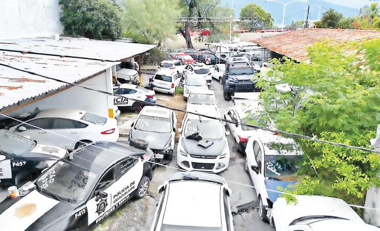 El corralón municipal, ubicado en la avenida Plutarco Elías Calles, a un costado de la Secretaría de Seguridad Pública, se encuentra abarrotado de vehículos de diferente tipo que muestran diversos desperfectos.
