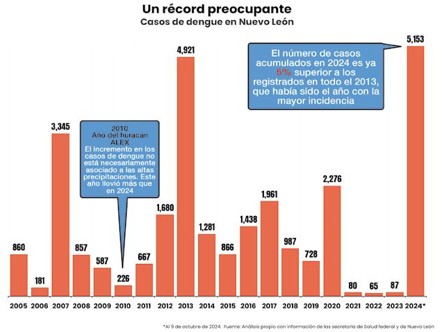 EL 2024 YA es un año histórico en el tema de salud en Nuevo León, pues en 10 meses van 5 mil 153 casos confirmados de dengue, algo que en dos décadas no se había visto.