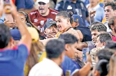 Lo surrealista ocurrió cuando Núñez, Araújo y otros jugadores saltaron a la grada para implicarse en la pelea entre hinchas mientras les llo -