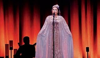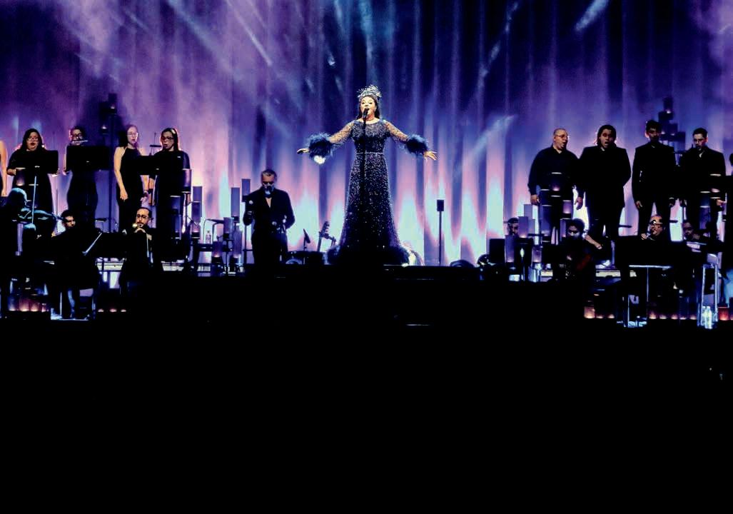 El telón se abrió con la orquesta al fondo del escenario y la soprano hizo su aparición al centro, lo que desató que los asistentes se le entregaran