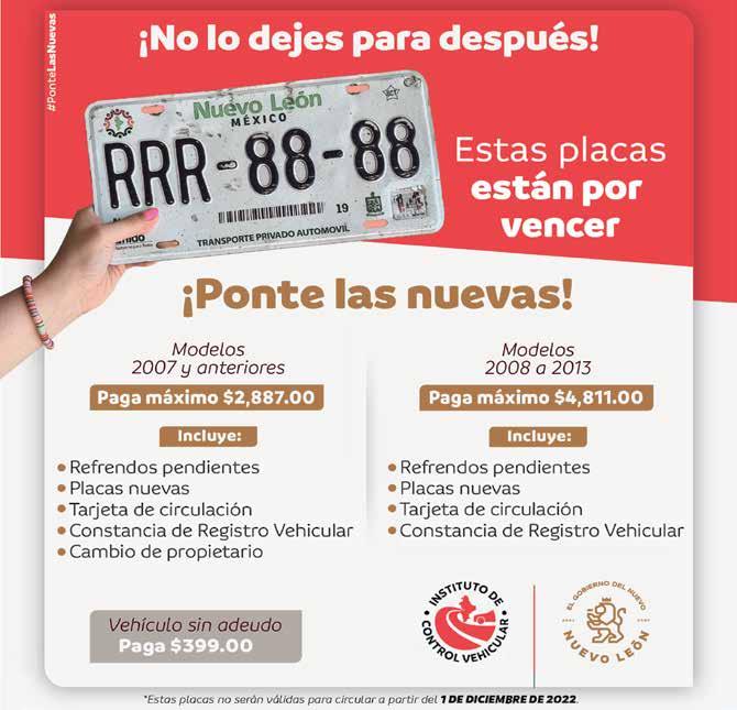 Modernización y equipamiento del Hospital de Galeana Mando centralizado y telecomunicaciones, Línea 3 del Metro Instalación del Laboratorio Cultural Nuevo León Diario Gratuito Jueves 20 DE OCTUBRE 2022 NO. 12029 • AÑO 37 ABCNOTICIAS.MX @ABCNoticiasMX /ABCNoticias.mx abcnoticiasmx Detectan más anomalías a ‘El Bronco’ La Auditoría Superior del Estado encontró anomalías por casi 11 mil millones de pesos en la cuenta pública 2021, que corresponde a los últimos nueve meses de la gestión del ex gobernador Jaime Rodríguez PÁG 2 Ciudad: Dirá Metrorrey ‘adiós’ a los boletos PÁG 5 vs.