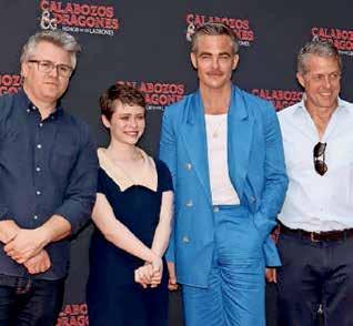 En la terraza de un hotel de Paseo de la Reforma, Sophia Lillis, Chris Pine y Hugh Grant compartieron su emoción por la aventura cinematográfica que vivieron juntos y que se estrena hoy en las salas de cine de México: “Calabozos y Dragones: Honor entre Ladrones”.