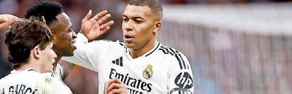 El Real Madrid sigue sin aflojar el paso en la Liga española y ayer igualó al Barcelona en la cima de la clasificación general, gracias al triunfo de 2-1 que consiguió ante Rayo Vallecano, el cual se combinó con la derrota que el Atlético de Madrid sufrió ante el Getafe, en duelos de la fecha 27. Ante la falta de juego de conjunto, los de blanco apelaron al talento individual de sus jugadores y, a la media hora de juego, apareció Kylian