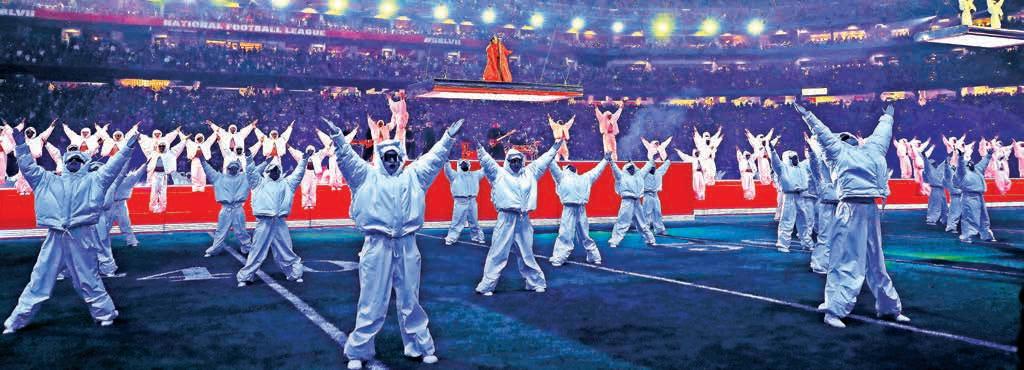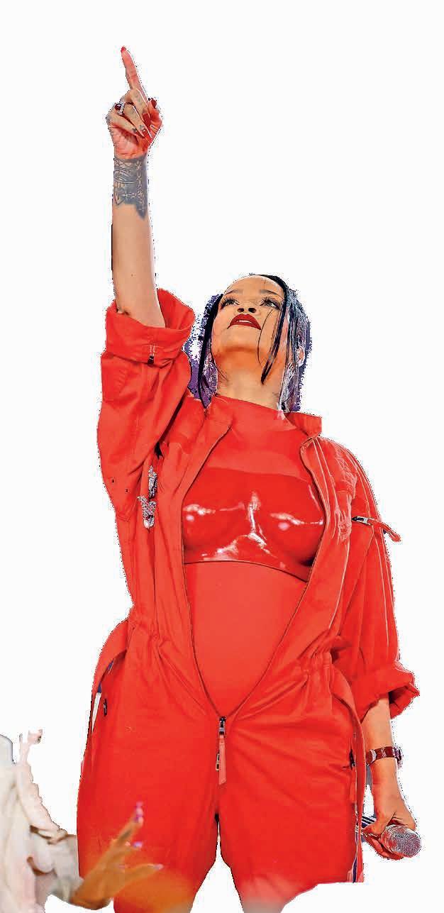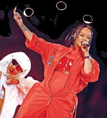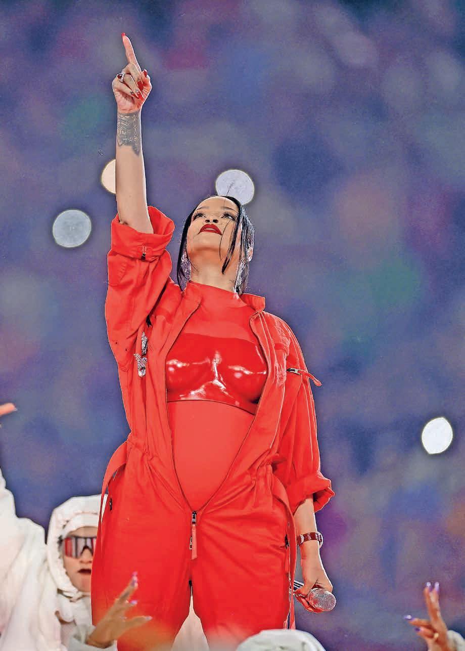n el medio tiempo del partido disputado entre Philadelphia Eagles y Kansas City Chiefs, la máxima estrella de Barbados bri- lló como hacía mucho no lo hacía. Rihanna comenzó su show sus- pendida en una plataforma en el aire con el tema “B*tch Better Have My Money”, con un atuendo en co- lor rojo junto a bailarines con ves- tuarios en color blanco.