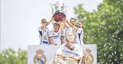 las Cibeles en donde los esperaban miles de fanáticos para celebrar. Tras completar una vuelta por la pasarela para ofrecerle el trofeo a los aficionados reunidos, Nacho subió las 15 escaleras (número especial al tratarse también del número de Ligas de Campeones que tratará de conquistar el Real Madrid el próximo 1 de junio en Wembley) hasta lo alto del monumento para concluir el festejo.
