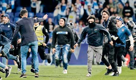 Tras convertirse en campeones de España, luego de vencer ayer 4-2 al Espanyol, Barcelona no pudo festejar el título en cancha ajena, luego de que aficionados ultras rivales invadieron el terreno de juego.