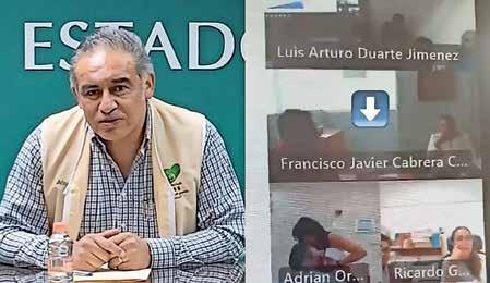 A través de Twitter se difundieron imágenes de una pantalla en la que se observa al directivo del IMSS, junto a una mujer con el torso desnudo, mientras que en el resto de los recuadros se encuentran otros empleados.