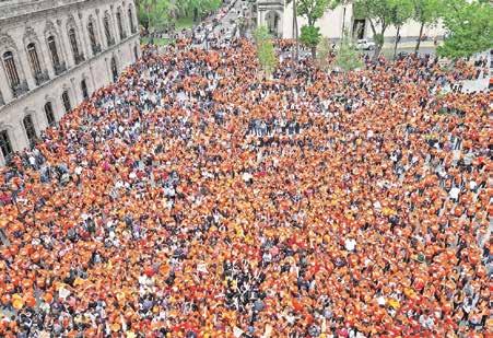 Mariana Rodríguez se reunió con una ola naranja de simpatizantes en la Plaza Cultural y después se dirigió a registrarse al IEEPC, ubicado por 5 de Mayo. Foto:
