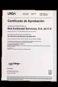 Este certificado respalda el trabajo que ha hecho hasta ahora Red Ambiental en materia de seguridad y salud para todos sus trabajadores, pues demuestra el evidente liderazgo que la empresa ha mantenido respecto al sistema de ges-