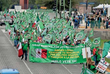 Integrantes del Frente Nacional Ciu dadano (Frena) llevaron a cabo una marcha en calles de la zona centro de Monterrey, en la que exigieron la re nuncia del presidente Andrés Manuel López Obrador.