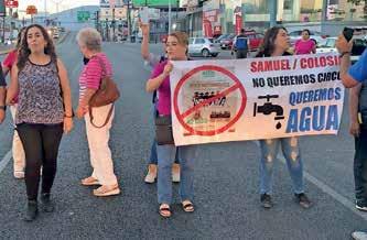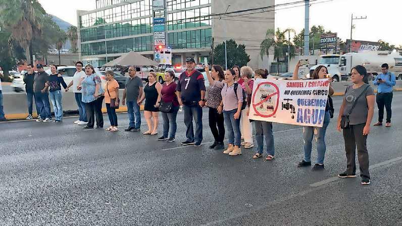 “Ya hicimos dos bloqueos en la rotonda de Leones, son semanas sin agua, sólo tenemos servicio de 06:00 a 09:30” comentaron vecinas que portaban lonas con la leyenda: “Samuel/Colosio, No queremos circo, queremos agua”.