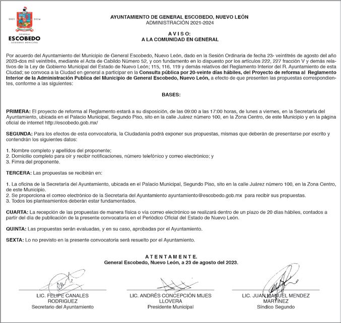 S.A. Oficinas y Talleres: Platón Sánchez 411 Sur, Monterrey, N.L. Apartado M-19 C.P. 64000 Tel: 81-8047-4900 Oficinas en CDMX: Leibintz 231, Col. Anzures México, CDMX C.P. 11590 Delegación Miguel Hidalgo Tel: 81-80474900 Número de Certificado de Reserva otorgado por el Instituto Nacional del Derecho de Autor 042011-020413033200-101 Fundado el 15 de Junio de 1985. Certificado de Licitud de Título y Contenido No. 15281 otorgado con fecha veintidós de julio de dos mil once por la Comisión Calificadora de Publicaciones y Revistas Ilustradas de la Secretaría de Gobernación. Los conceptos vertidos por los editorialistas son bajo su propia responsabilidad y no reflejan el sentir de este periódico.