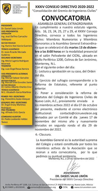 La calidad del aire sigue empeorando; ayer las autoridades estatales emitieron la alerta ambiental número 12, que iguala las del 2021 y supera las de 2019 y 2020 Gonzalo Estrada Cruz (†) Fundador Alberto Estrada Torres Presidente del Consejo de Administración Gonzalo Estrada Torres Vicepresidente del Consejo de Administración Alberto D. Estrada Hernández Director General Gonzalo I. Estrada Sáenz Director Corporativo de Relaciones Institucionales Juan Antonio Martínez Director Editorial Claudia Osuna Cedillo Director Comercial Enrique Trujillo Alvarez Director de Infraestructura Eduardo Garza Hinojosa Gerente de Relaciones Institucionales Año 37. No. 12063 7 de Diciembre de 2022 ABC es una publicación, de impresión y distribución diaria de Editorial Monterrey, S.A. Oficinas y Tall eres: Platón Sánchez 411 Sur, Monterrey, N.L. Apartado M-19 C.P. 64000 Tel: 8047-4900 Oficinas en CDMX: Leibintz 231, Col. Anzures México, CDMX C.P. 11590 Delegación Miguel Hidalgo Tel: 8047-4900 Número de Certificado de Reserva otorgado por el Instituto Nacional del Derecho de Autor 04-2011020413033200-101 Fundado el 15 de Junio de 1985. Certificado de Licitud de Título y Contenido No.