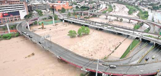 EL RÍO SANTA CATARINA desató su furia contra la avenida Constitución. Al ensanchar su corriente causó tres desgajamientos ennla arteria.