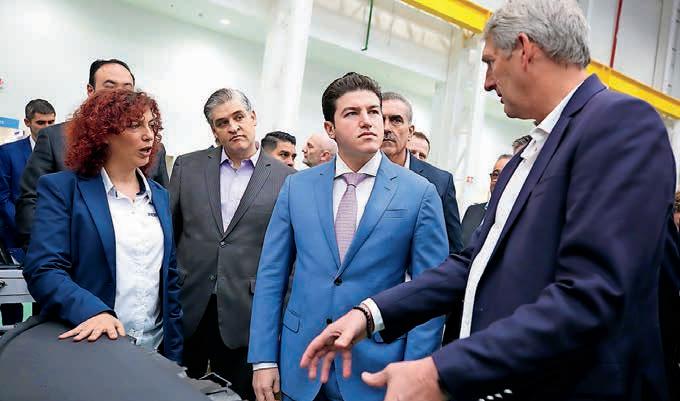 El gobernador Samuel García recorrió ayer la empresa Forvía, recién inaugurada, que fabricará asientos para los autos de Tesla. Foto: Especial