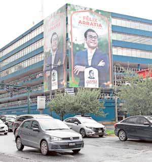 Otro ejemplo es el del alcalde de Juárez, Félix Arratia, quien aparece en panorámicos en avenida Garza Sada y Revolución, o la calle Reforma.