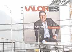Durante un recorrido realizado por ABC Noticias, se observaron panorámicos en los que Raúl Cantú, edil de Salinas Victoria, aparece en la portada de una revista que lo presenta como “el mejor evaluado del estado”, en avenidas de Monterrey como Fidel Velázquez y Eugenio Garza Sada.