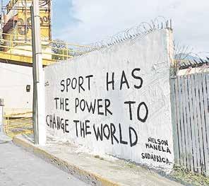 El primer mural, con la frase de Mandela, no sólo resalta el papel del deporte como agente de cambio social, sino que también da pie a una narrativa que une culturas a través del lenguaje y el espacio público.