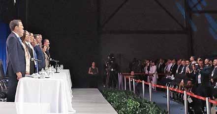 En el presidium de honor participaron la Presidenta de México, Claudia Sheinbaum Pardo; el Gobernador de Nuevo León, Samuel García Sepúlveda; el Secretario de Economía, Marcelo Ebrard Casaubón; así como Altagracia Gómez, Coordinadora del Consejo Asesor de Desarrollo Económico de la Presidencia.