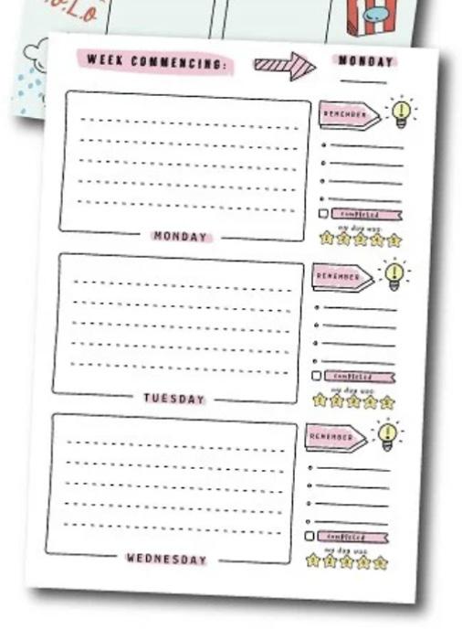 Self-evaluation weekly record sheets