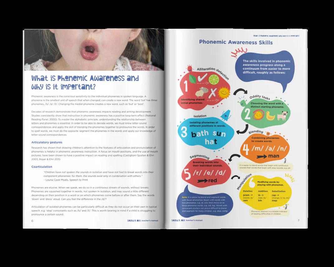 The all-in-one Sound It Out Resource is an easy-to-use resource that is extremely versatile. Designed in collaboration with Deirdre O’Toole (Playful Classroom) making it the first of it’s kind designed for the Irish classroom. It can be used alongside any synthetic phonics programme and aligned with any scope and sequence, as a stand-alone resource to explore articulatory gestures during phonemic awareness instruction, and as a reference for spelling.