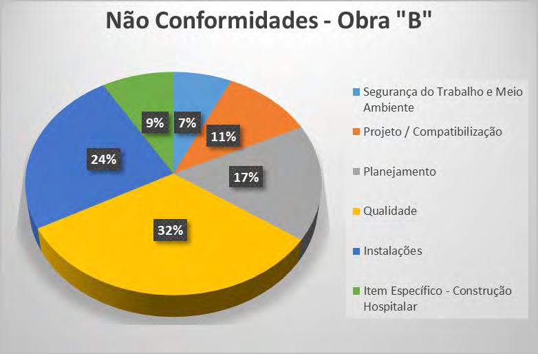 A outra área destacada neste estudo é a es pecificidade hospitalar que apareceu como responsável por 116 NCC. Entende-se que para a redução deste número de apontamentos faz-se necessário uma equipe de gestão es pecializada e com vivência no segmento de construção hospitalar.