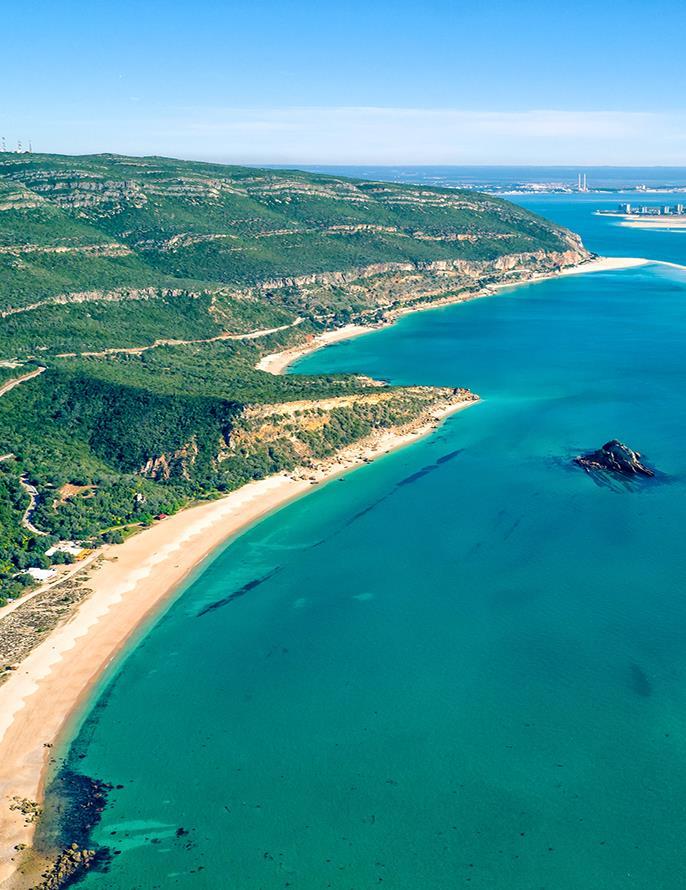 Troia, a peninsula in which a huge expanse of white sand meets crystal clear waters of mutant shades of blue. A protected landscape with some residential and tourist spots of superior quality at distance of an hour from the capital.