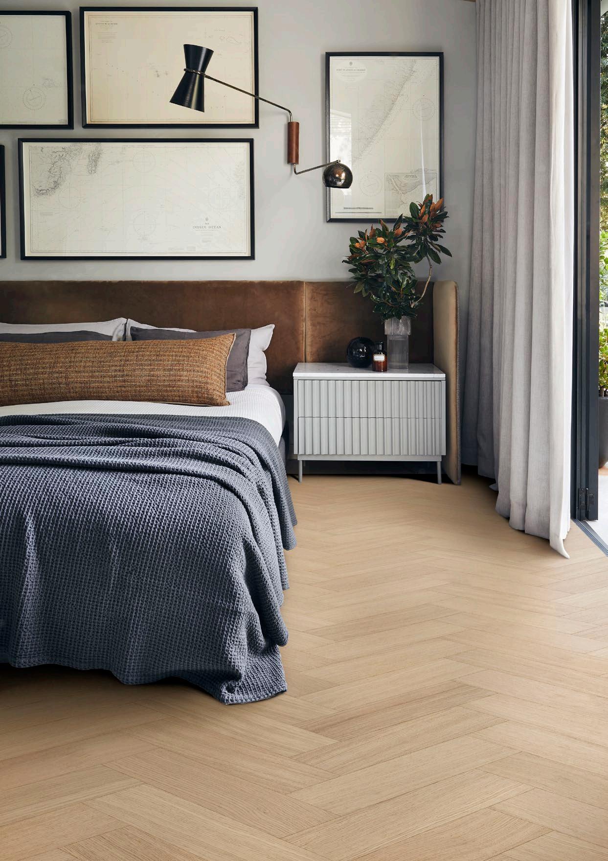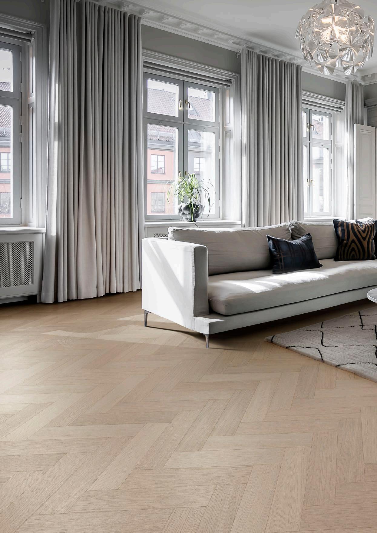 Mit ihrer authentischen Eichenstruktur, ultramatten Oberfläche und dem unverwechselbaren Fischgrätdesign verkörpern diese Böden modernes Wohnen – natürlich, einladend und stilvoll.