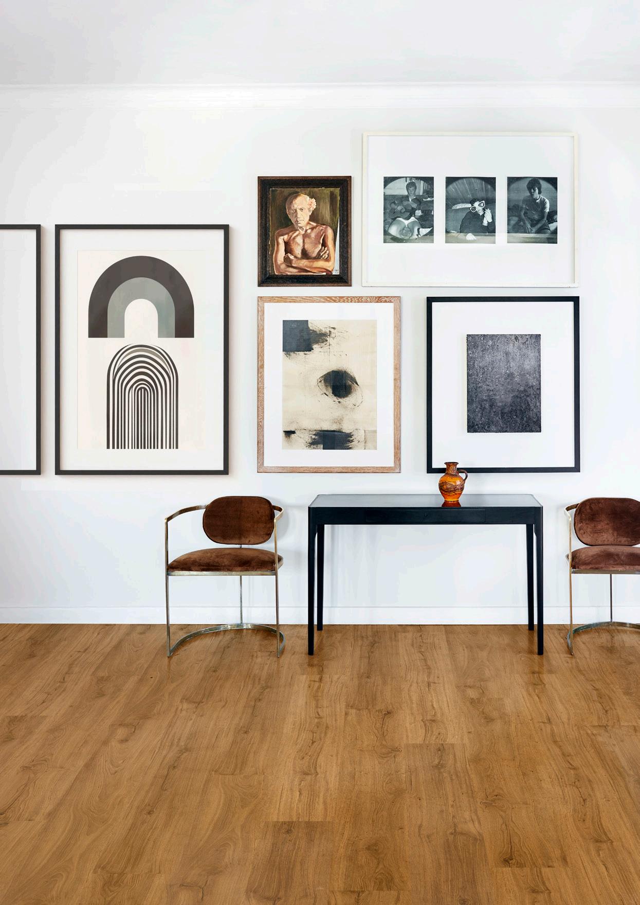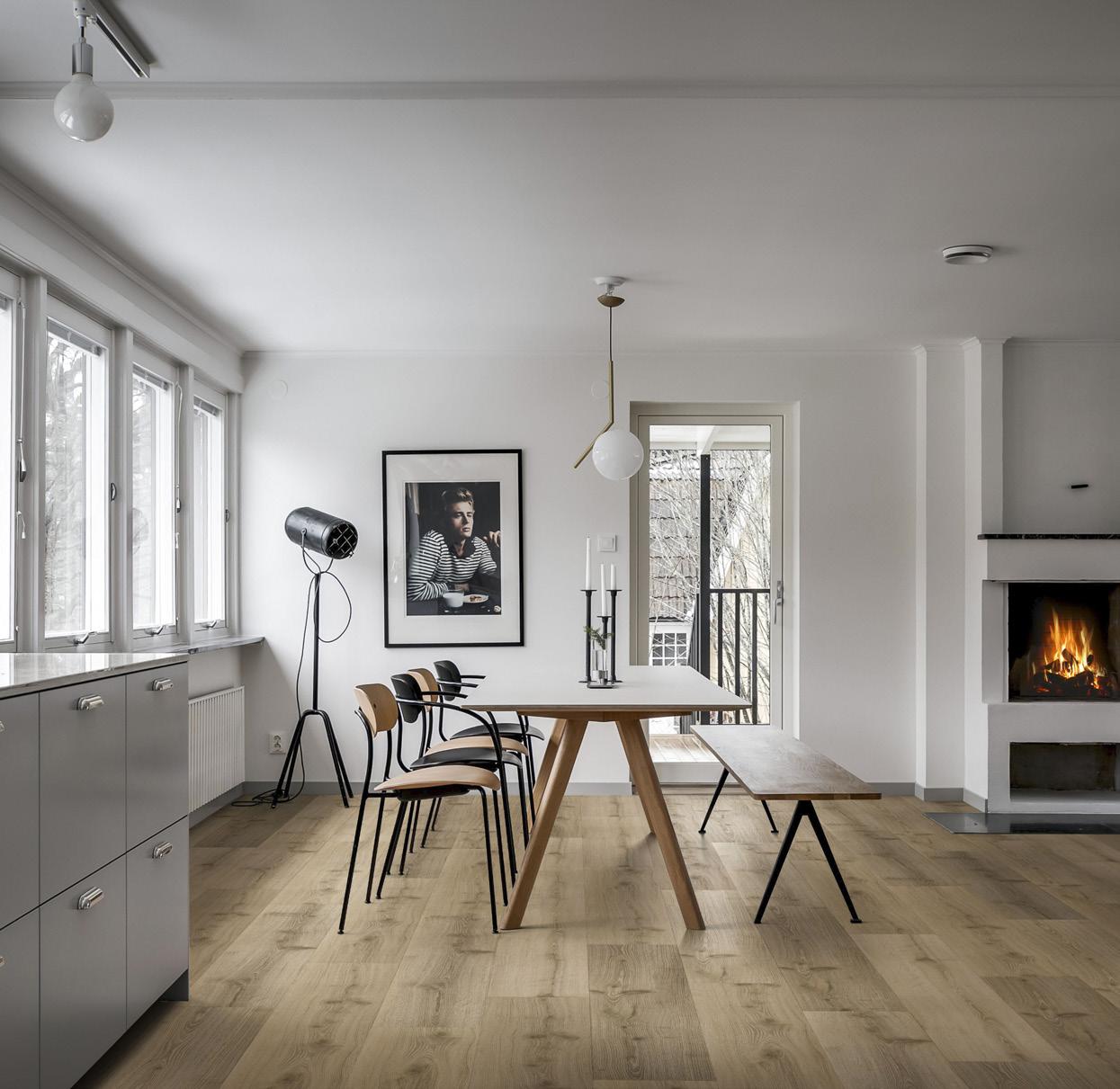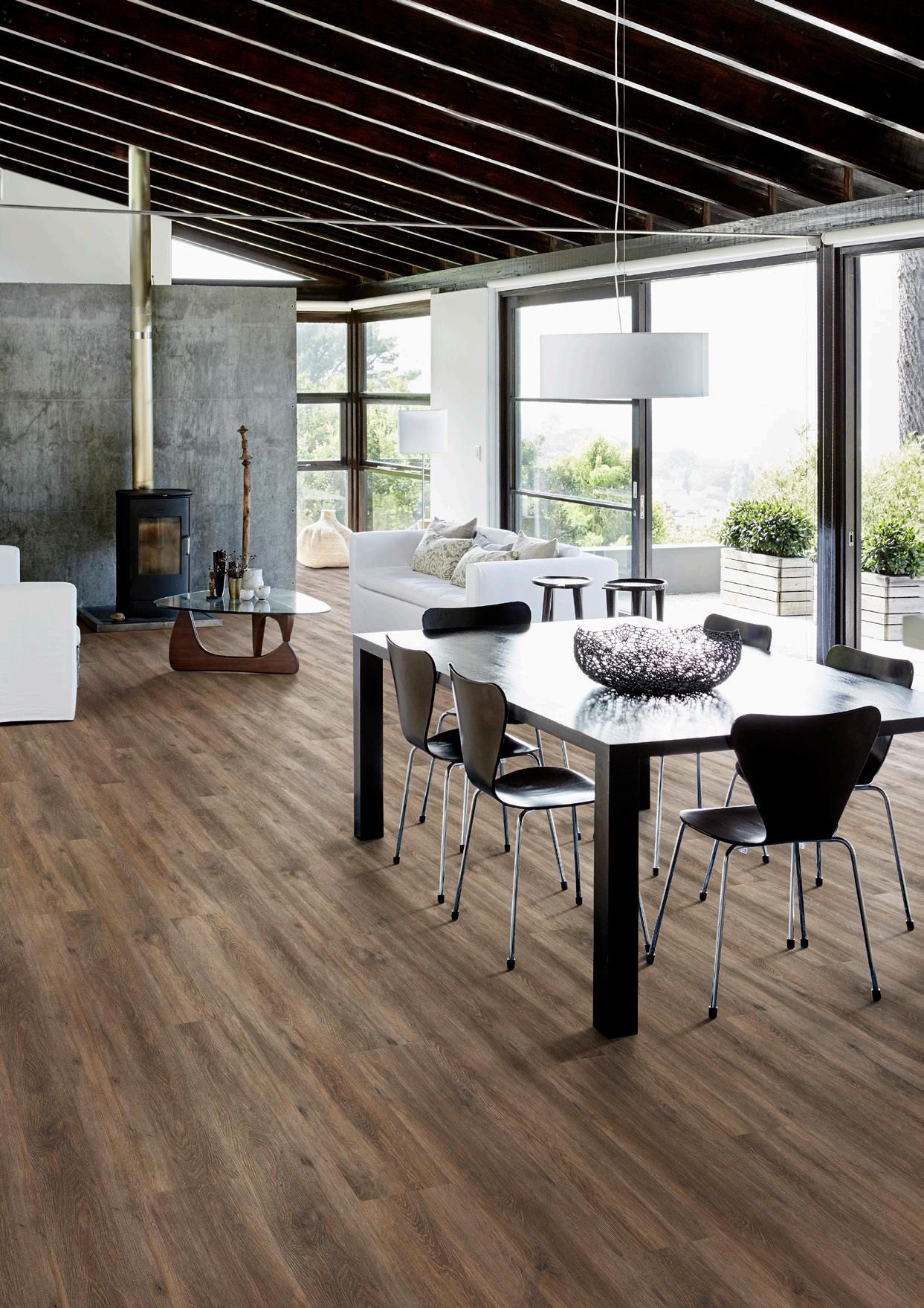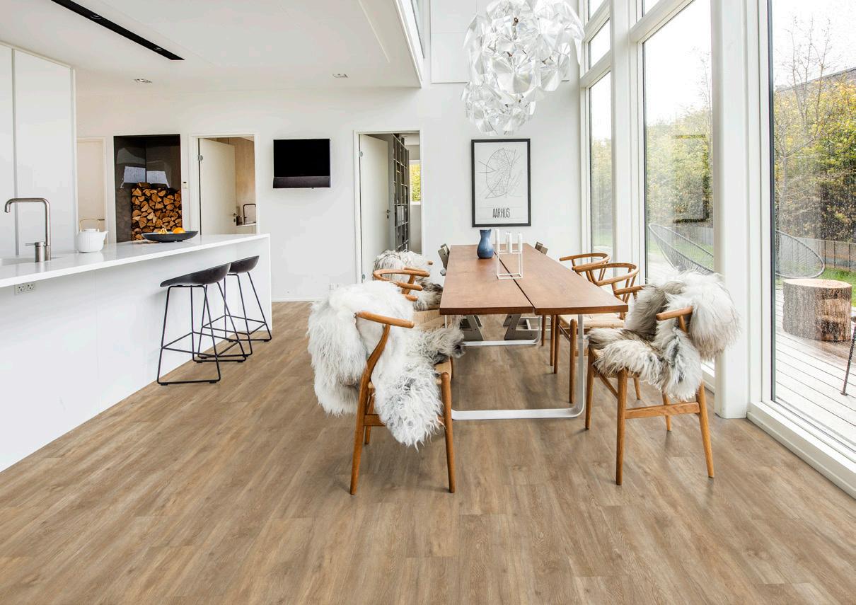Kährs Luxury Tiles Click är designade för privata och offentliga utrymmen där golven måste vara limfria, dekorativa och robusta. De finns i olika trä- och stendesigner. Det patenterade fogsystemet säkerställer maximal hållbarhet och stabilitet hos produkterna. Genom att klicka ihop plankorna/plattorna är det väldigt enkelt att installera. Kährs Luxury Tiles Click har även *integrerad stegljudsdämpning, vilket ger en behaglig rumsakustik och minskar stegljud effektivt. Ytan är försedd med ett stark keramiskt ytskikt som är resistent mot slitage, repor och vatten. Dessa golv kan också installeras på många befintliga golv. Detta gör dem idealiska för renoveringsprojekt. Precis som alla andra vinylgolv från Kährs är de ftalatfria.