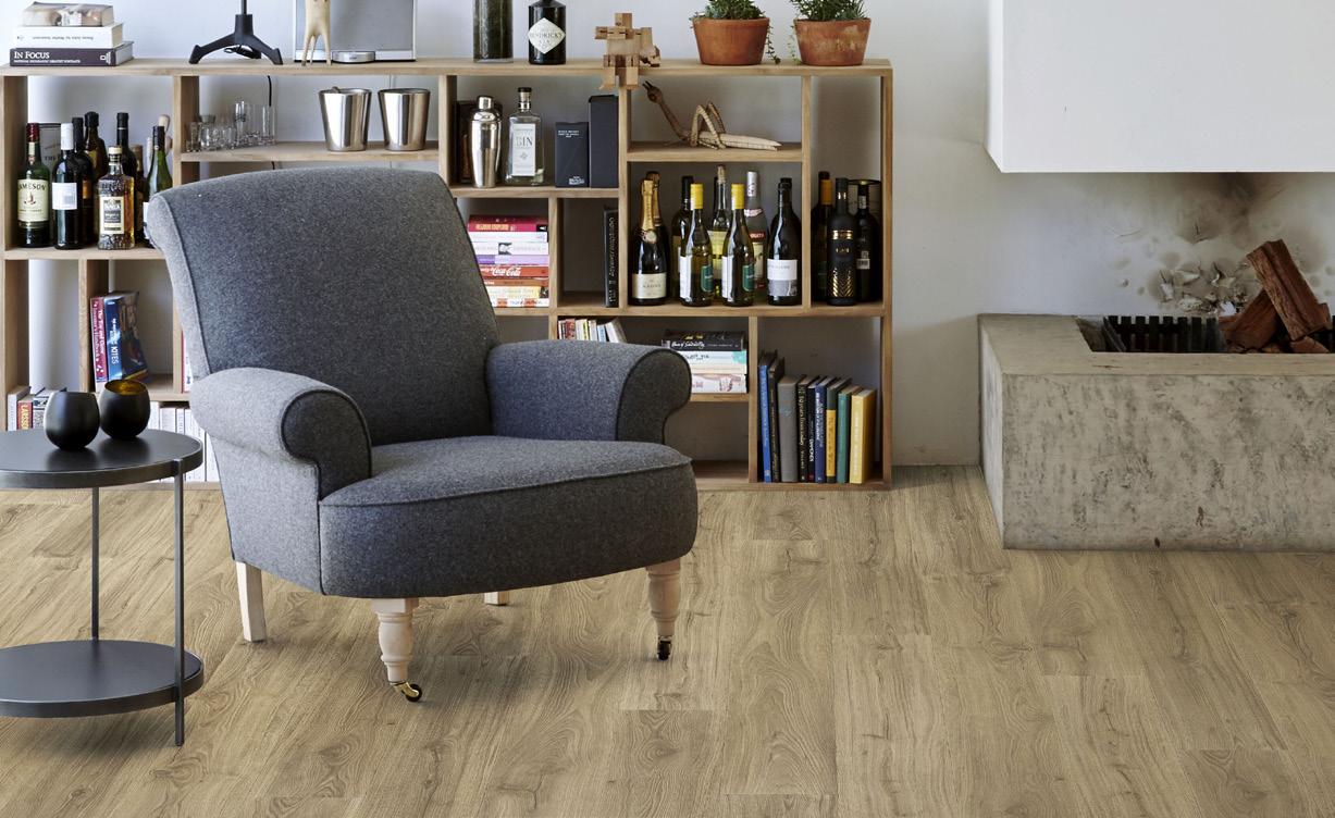 Alla golv från Kährs Luxury Tiles Click är vattentåliga. Du kan installera dessa golv i de flesta rum (ej badrum, våtutrymme). Föräkra dig om att ytan är torr och fri från skräp.