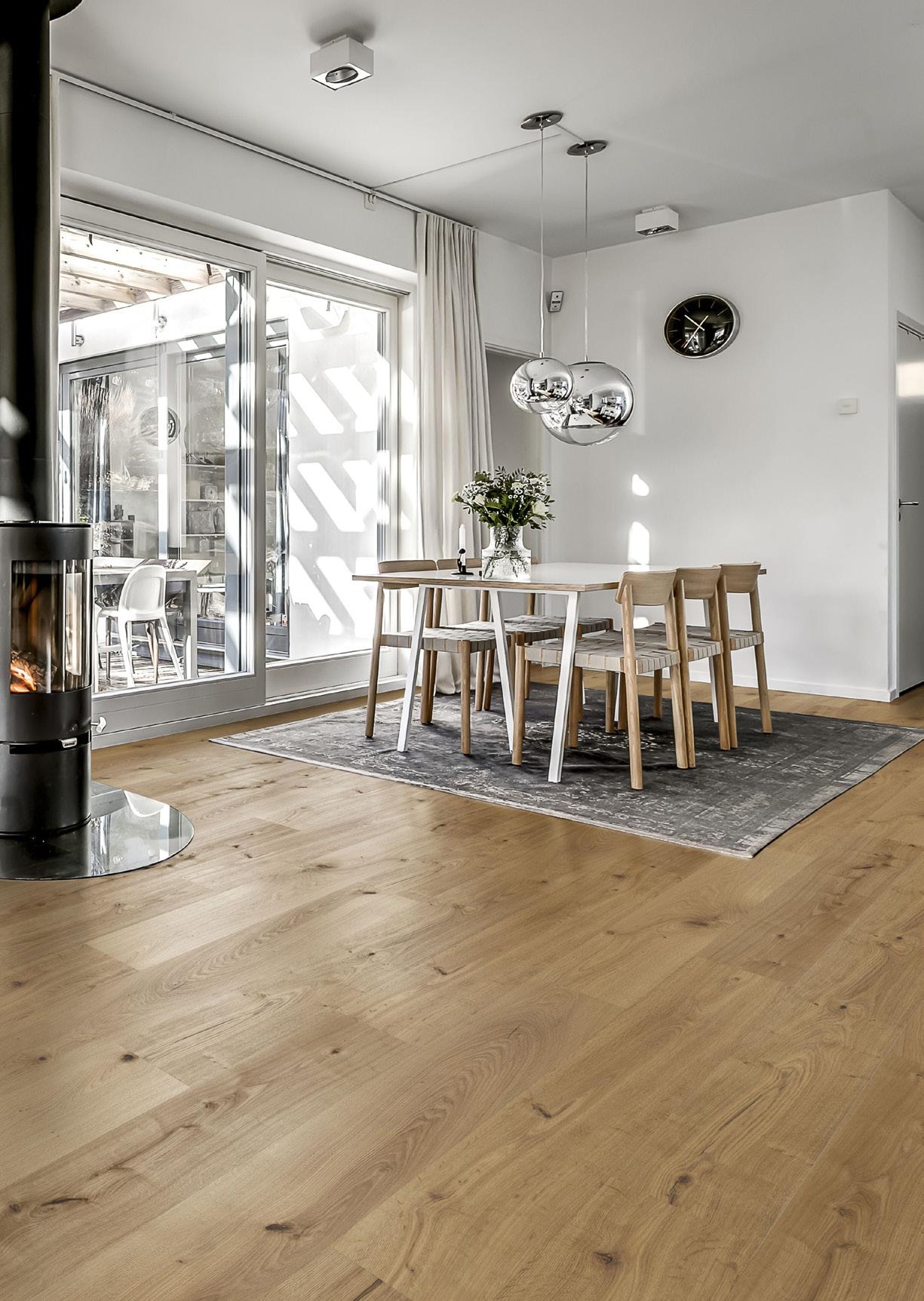 Från naturliga eller honungsfärgade ektoner, över rökiga nyanser av brunt, till mjuka vita toner. Våra golv erbjuder ett brett spektrum av färger, så att du kan hitta den stil som perfekt speglar din personlighet och ditt hem.
