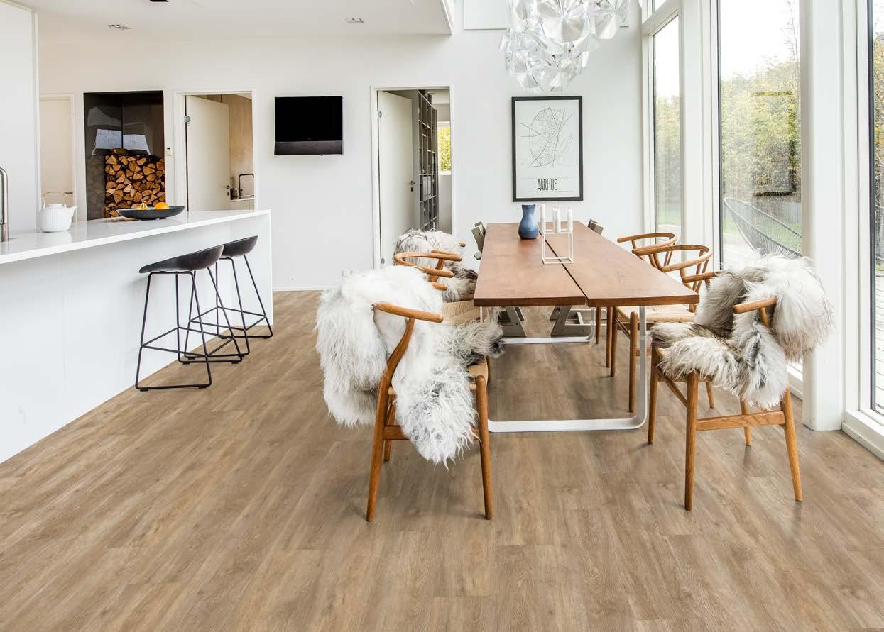 Non seulement ces sols sont superbes et durables, mais ils font aussi la promotion d'un bon environnement intérieur puisqu'ils sont exempts de phthalates, réduisent l'impact sonore et sont confortables. Notre format à assemblage par clic est facile à poser, même sur un système de chauffage par le sol, et nous proposons également des formats loose lay ou dryback, selon vos préférences.