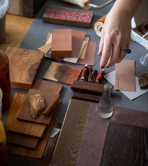 Infärgning tar fram träets naturliga färgtoner. Vi kan även lägga på nya färger och helt förändra träets utseende. Kährs erbjuder en mängd olika infärgningsalternativ – från blekt vit till fylliga nyanser i toner av träkol.