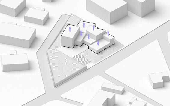 Extruding the building mass and dividing the whole into smaller fragments; each performing a specific function.