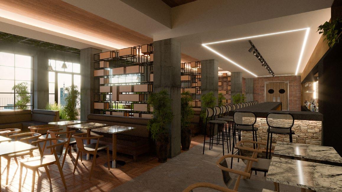 This project is a studio project for Interior Design. The brief chosen was to design a rooftop bar in Mumbai, which with its stunning skyline creates a potential for astonishing views form the roof - top. The theme of the cafe leans towards a grunge, industrial and dark vibe for ambience. This was complemented by a plethora of cove and ambient lighting around the interiors of the cafe to provide a
