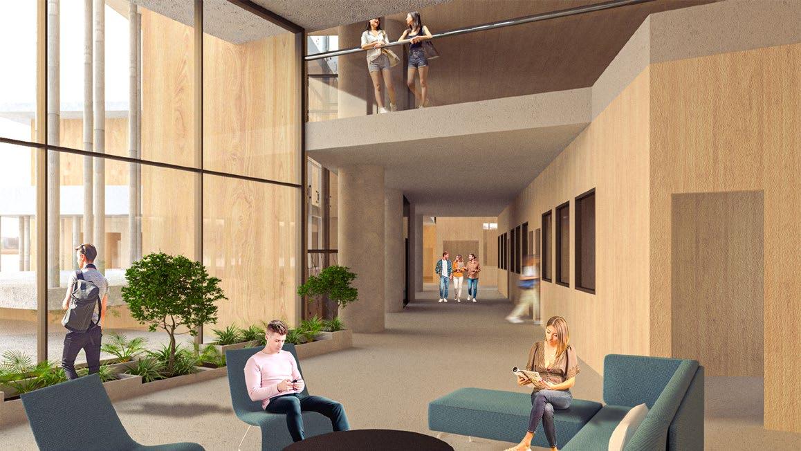 These blocks are unified in the interior with a 3 - storey atrium. The floor plans have been designed for maximum human interaction, with all the upper floors overlooking the atrium. Breakout spaces and interaction spaces are a key in the design ensuring that no space is ever empty and the institute is always full of life.