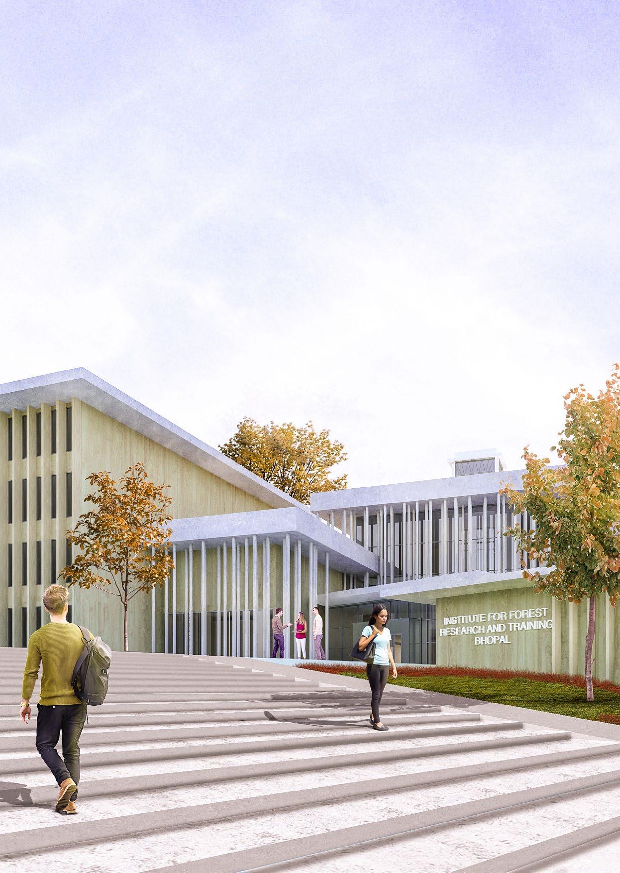 The Forest Research and Training Institute in Bhopal, the capital of the state of Madhya Pradesh follows a similar concept. The building has been broken down into several blocks, each block having its own function.