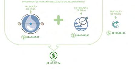 Para garantir segurança hídrica das sedes urbanas vulneráveis seriam necessários R$ 110,3 bilhões até 2035. Já para a reposição de ativos das demais sedes, incluindo-se produção, reserva, redes de distribuição e ligações domiciliares seriam necessários R$ 104 bilhões adicionais até 2035. Total de R$ 214,3 bilhões.