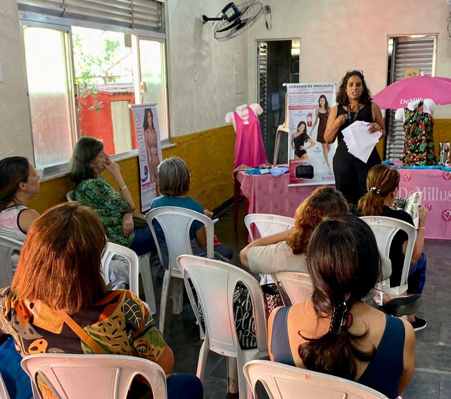 talentos alcançando os resultados esperados tentando equilibrar os pratos emocionais e técnicos. Esse sentimento também representa a empresa, me espelhei no melhor exemplo, na melhor escola, com equipes potentes, sendo a maioria mulheres oriundas das favelas. Mulheres que lutam, cuidam dos seus filhos e dos seus pais, e no geral, sozinhas para tudo. Pessoas determinadas a vencer, mas sem saber como, sem conhecimento, sem recursos, sem oportunidades. Mulheres invisíveis para sociedade e para o estado. Estas já estavam empregadas com todas as garantias trabalhistas que a DeMillus honra com maestria, mas ainda havia muitas a potencializar.